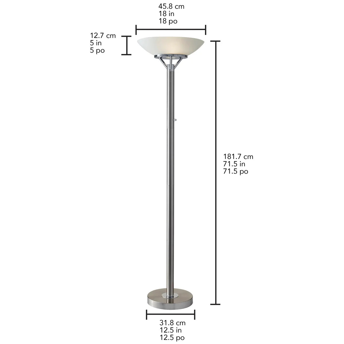 Expo Floor Lamp – Brushed Steel with Frosted Glass Shade (71.5 in.)