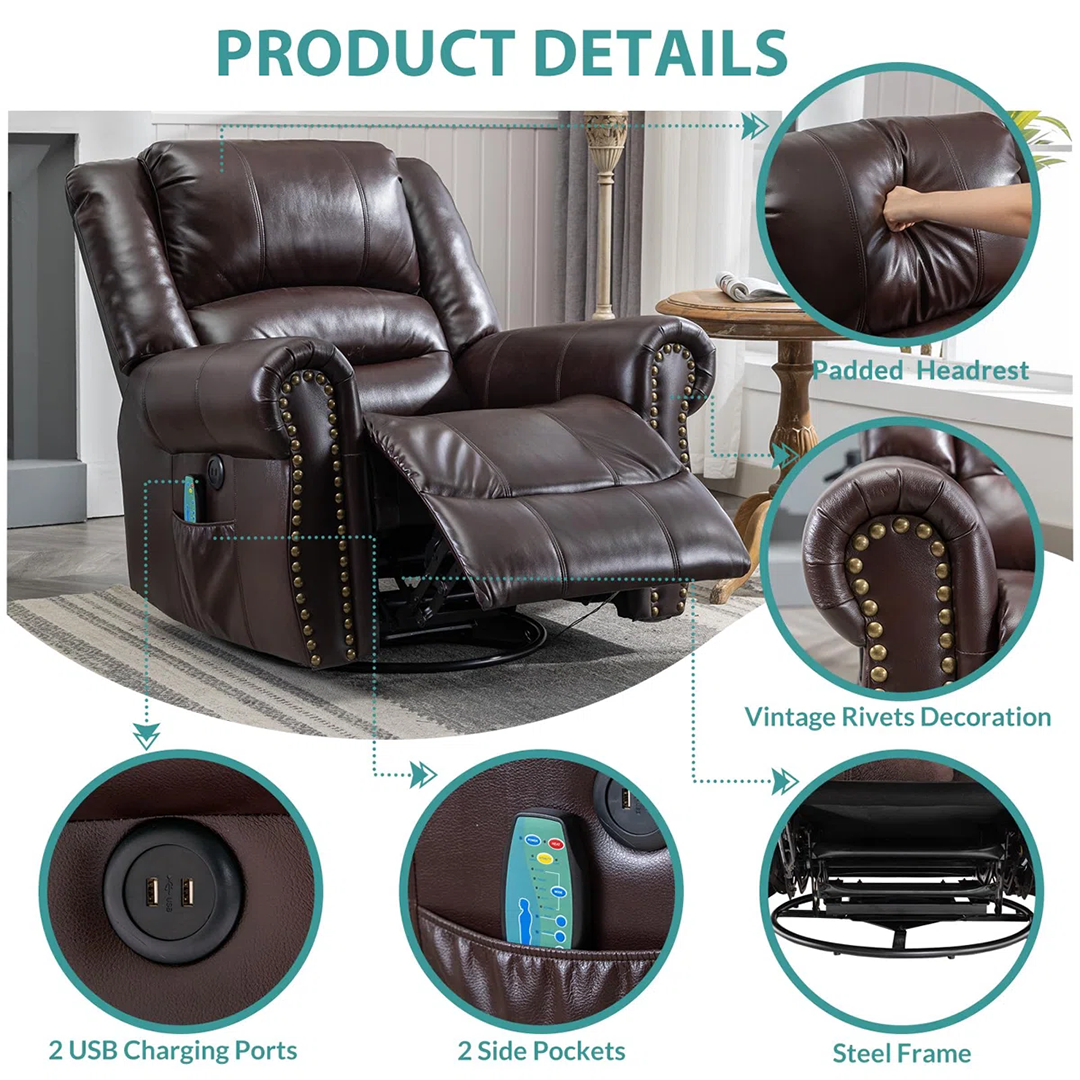 Pacanow 40" Wide Manual Swivel Recliner with Built-In Massager – Comfort & Relaxation in One