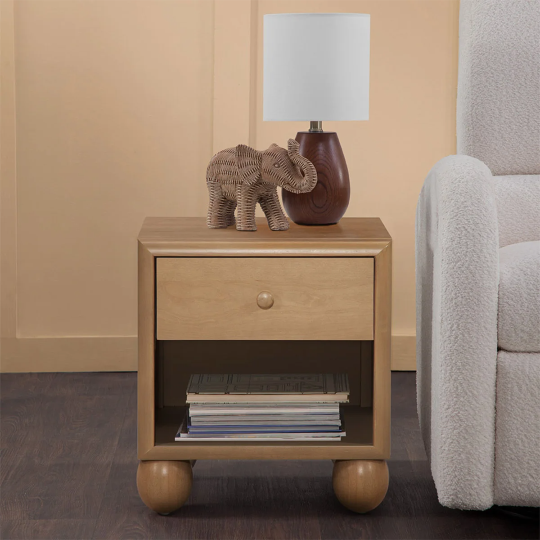 Riley Grace Nightstand – Rubberwood & Birch Construction with Soft-Close Drawer & Open Shelf