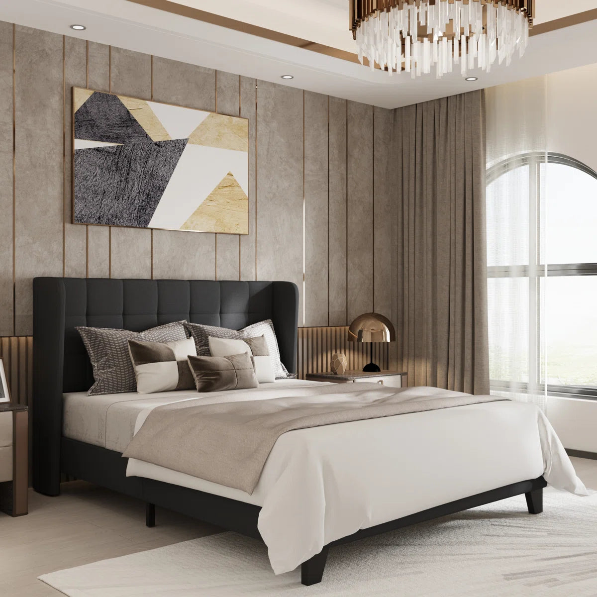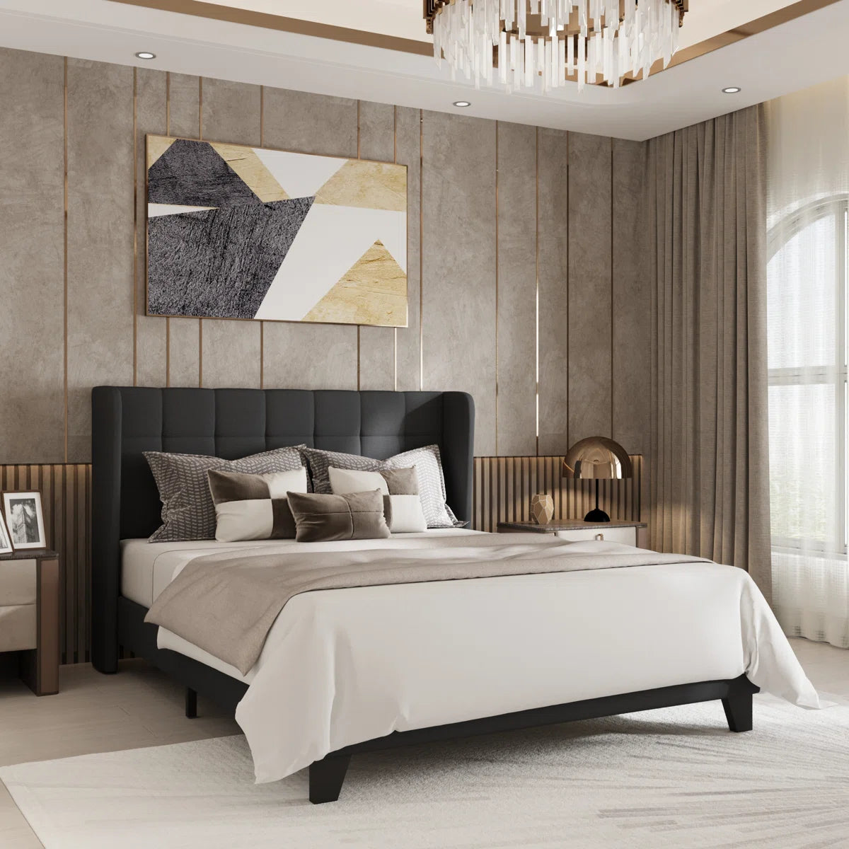 Upholstered Bed with Square Tufting and Wingback – Stylish Comfort for Your Bedroom